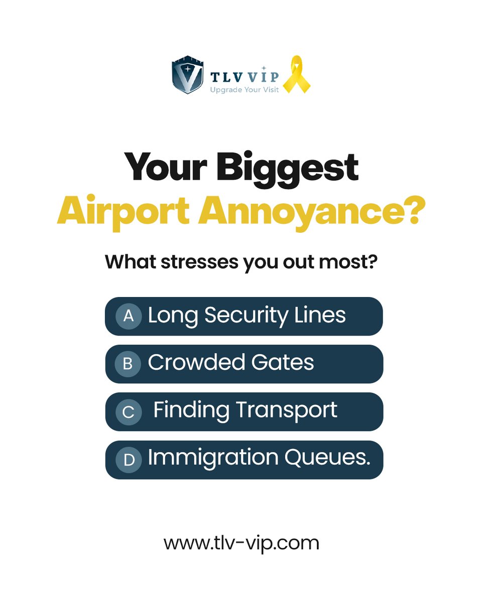 We all experience those moments at the airport that add stress to the journey. ๐ฉ From queueing to navigating crowded areas, certain things can be frustrating. ๐ Share your biggest airport annoyance by commenting below. #tlvvip #airporttransfers #vipexperience #airportstress