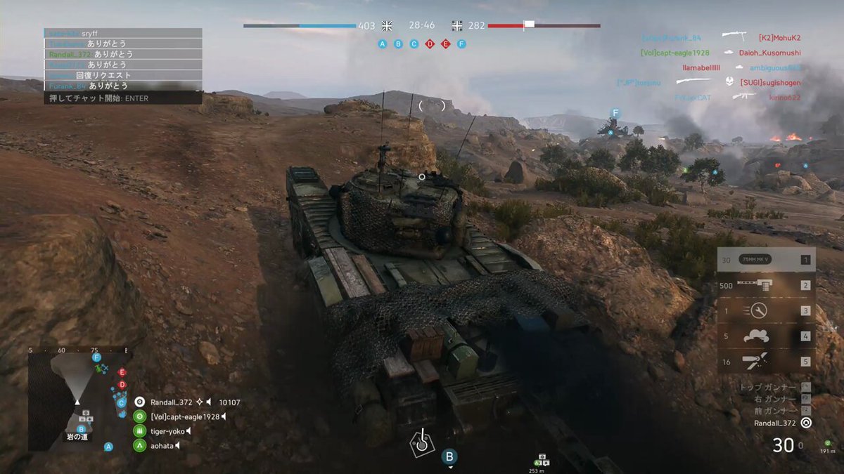 #BF5 #TOKAI_Server_JPN #PC版BFV お疲れ様でした ひさしぶりのFFON 味方踏んづけたり地雷で爆殺したり。V1でキックされなかっただけヨシ やっぱり撃つときに気を使うから疲れる。 けど、敵を敵に撃たせるような立ち回りしたり頭の使い所が多い。 回遊制御にもやっぱりFFは必要っすね。では次木曜!