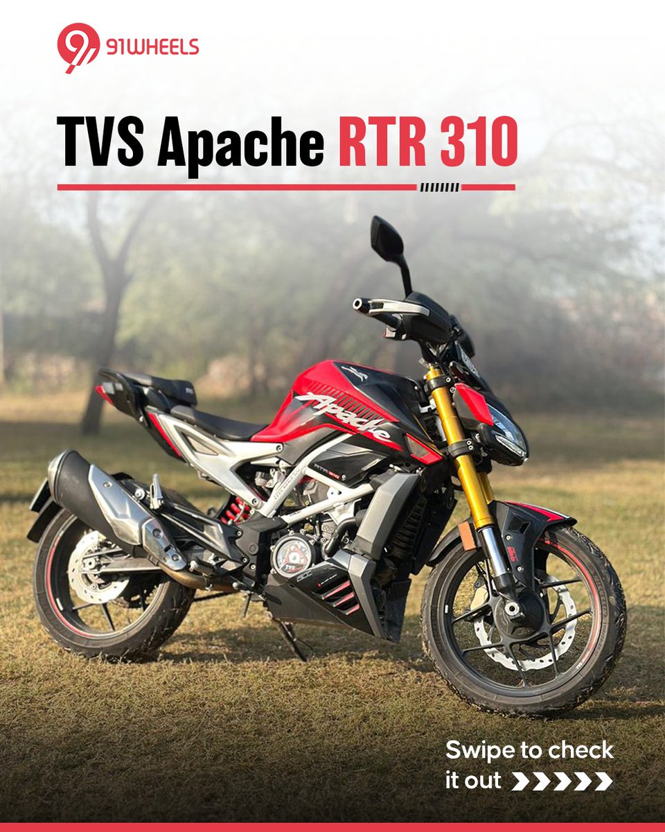 The TVS Apache RTR 310 features a sharp design, clean detailing and a premium overall finish. Swipe through the image gallery to take a closer look from every angle. #TVSApacheRTR310 #ApacheRTR310 #TVSMotor #MotorcycleDesign #BikeGallery #TwoWheelerIndia #91Wheels