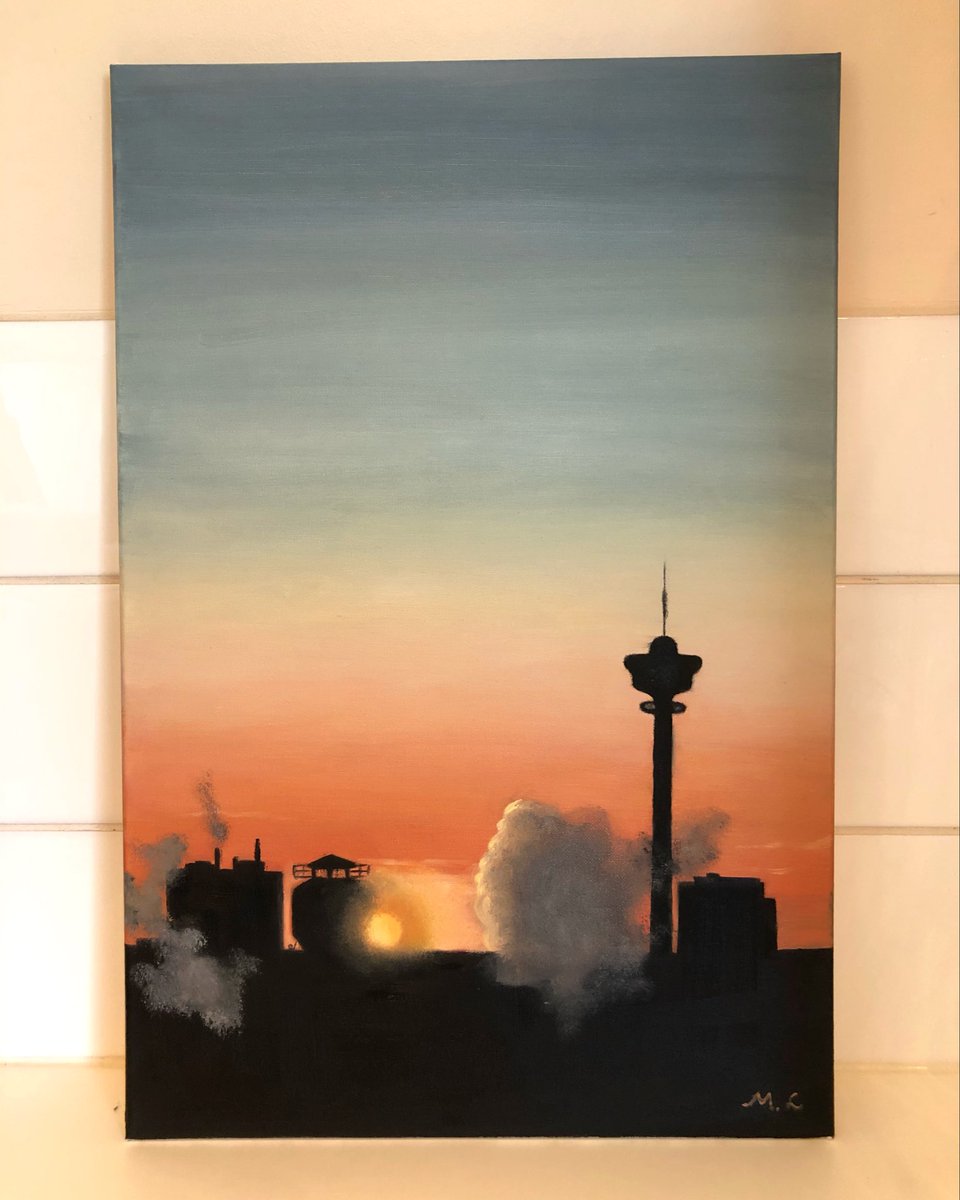 ”Kattokesä”, vanhempi tekele vuosien takaa. Asuin aikoinaan Ratinan suvannossa ja kaiholla muistelen sieltä avautuvia maisemia. Monet upeat auringonlaskut tuli todistettua🌇 #art #taide #painting #tampere #oilpainting #sunset #landscape