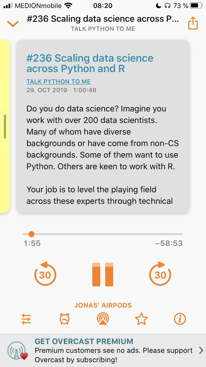 Discovered this #TalkPythonToMe episode about managing a group of #R and #Python users. Sure there will be great stories and insights about both languages!