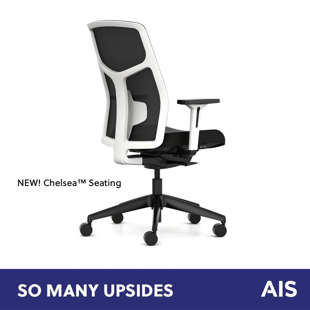 The new Chelsea task chair is designed with ergonomic & aesthetic features for any floorplan or color scheme. See it: ais-inc.com/files/AIS_Chel… Synchro-tilt, 3D arms, lumbar adjustment, & more provide all-day comfort. #AISFurniture #TaskSeating