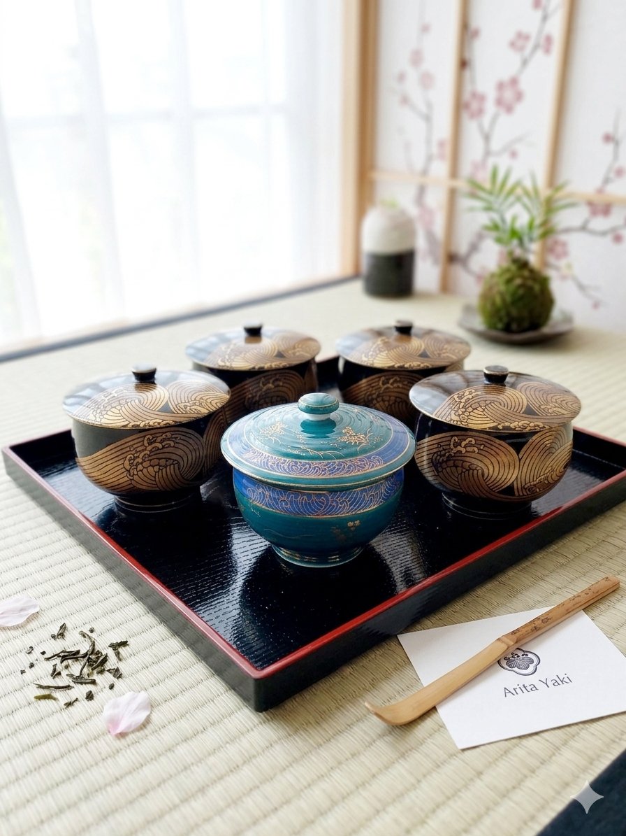 Mother's Day Sale 30% | Rare Arita Yaki Tea Bowl Set: Black & Blue Gold Wave, Eishou Kiln, Signed Tomobako etsy.me/3P1OaYI #tealovers #teaceremony #homedecor #ceramics #mothersday #etsysale #epiconetsy #shopsmall