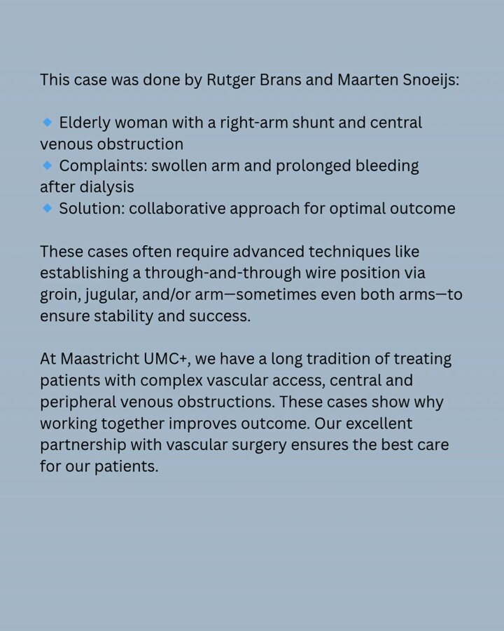 #CIRSEtakeover with Sanne de Boer @MaastrichtUMC Swollen arm, prolonged bleeding—and a solution that shows why collaboration improves outcome! 💪 #TeamworkMatters #VascularAccess #IRadlife