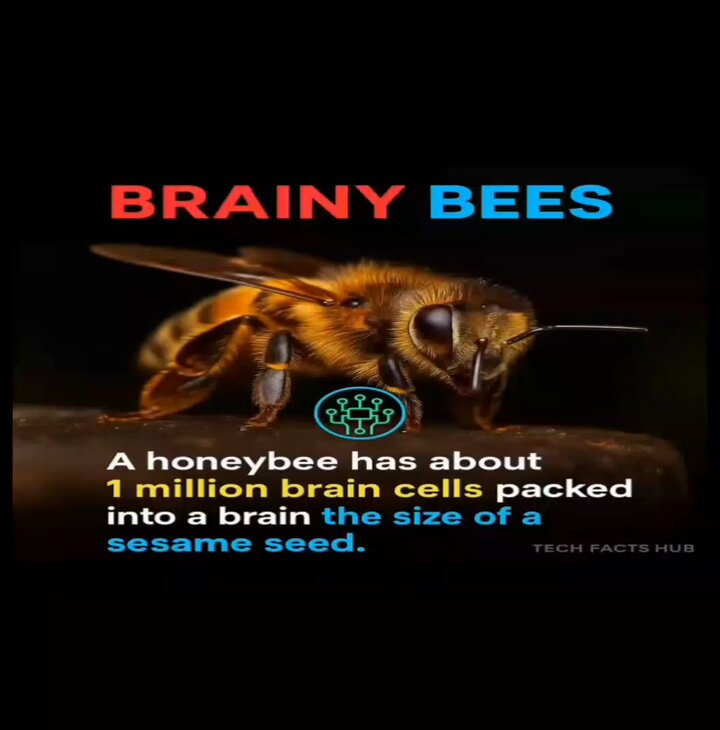 Tiny brain. Big intelligence. 🐝💡 A honeybee’s brain, the size of a sesame seed, packs nearly 1 million brain cells — enough for navigation, communication, and memory. Bees can even recognize faces and count objects — proof that intelligence isn’t about size. 🌍 #TechFactsHub…