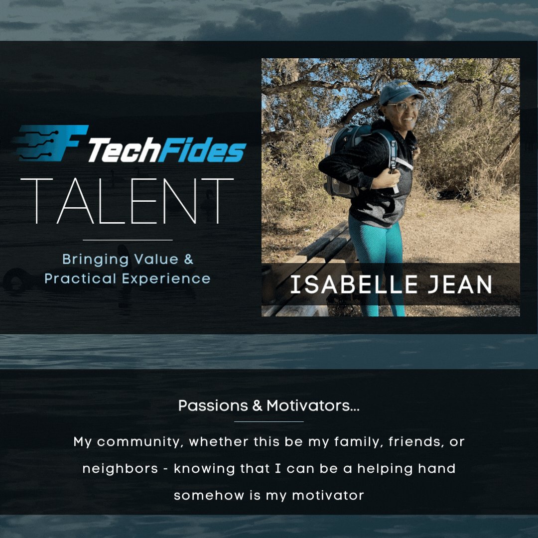Along with her passion for communication, Isabelle Jean strives to bring her talents to benefit her community, giving back in many ways. Hit that follow button to stay up to date with more #TechFidesTalent to come and the unique ways TechFides chooses to give back! #Community