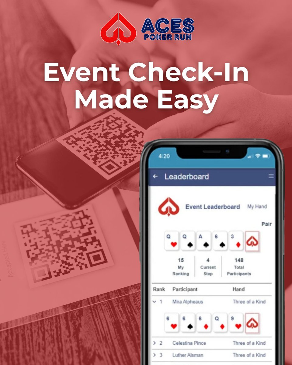 QR codes speed up check in and keep your event flowing smoothly with digital tools built right into the Aces Poker Run App. #EventApp #TechForRiders #EventManagement #PokerRun #AcesPokerRun