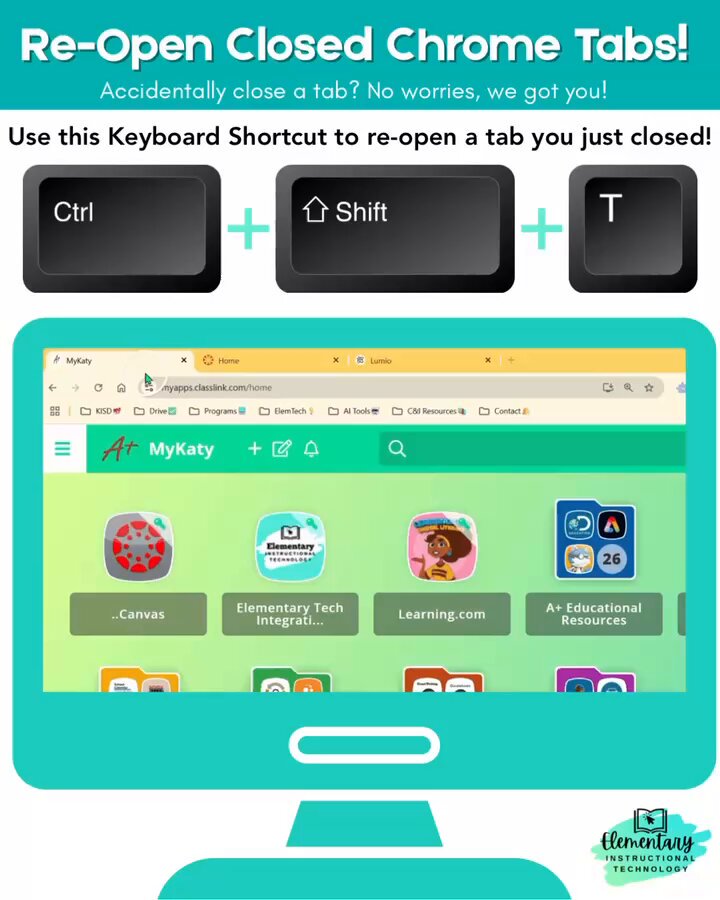 #TechTipTuesday: Ever close a tab by accident-right when you needed it? No worries! Just press: CTRL + Shift + T. Instantly reopens your last closed tab!✨ Perfect for when you’ve got 9 tabs open during planning & accidentally close the one with tomorrow’s lesson!👩💻 #KISDelemtech