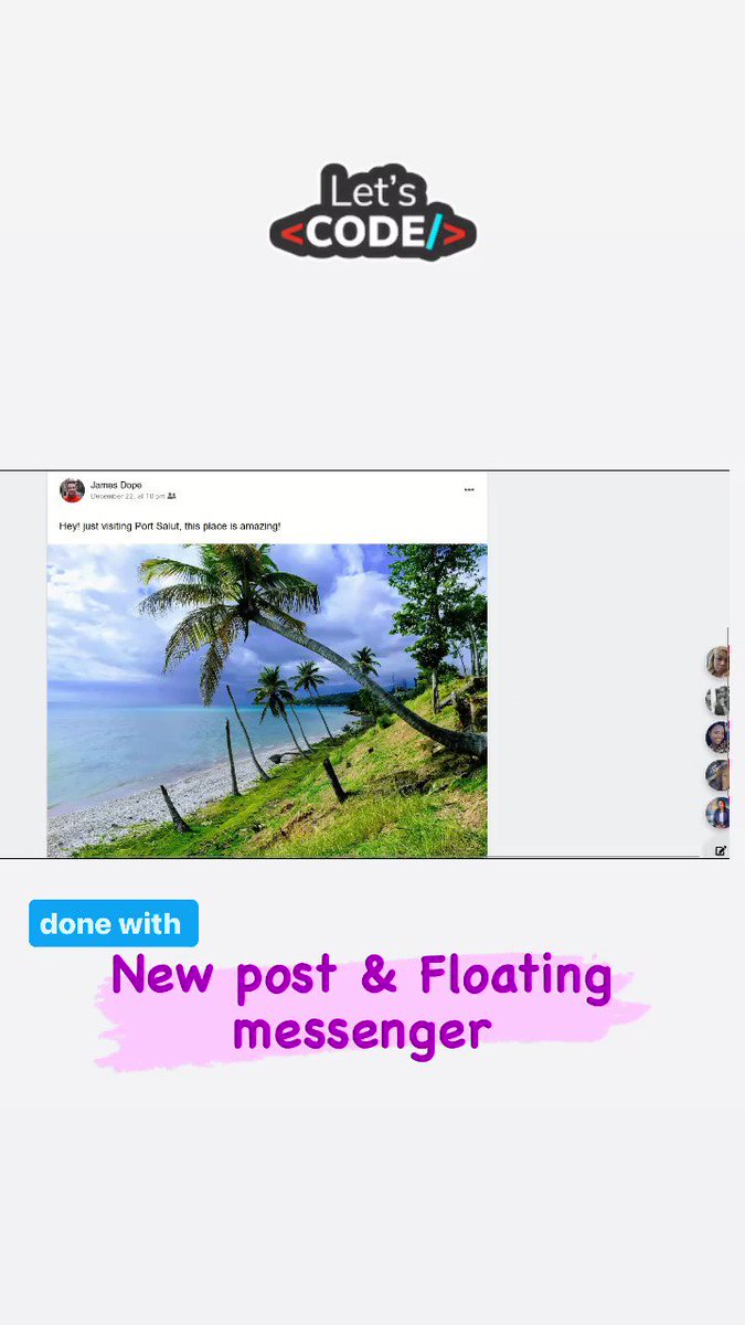 Day 32/100, done with New post & Floating messenger #FacebookClone #TechAccelerator #CodingPhase #100DaysOfCode #CodeNewbie #DevDiscuss #LetsCode