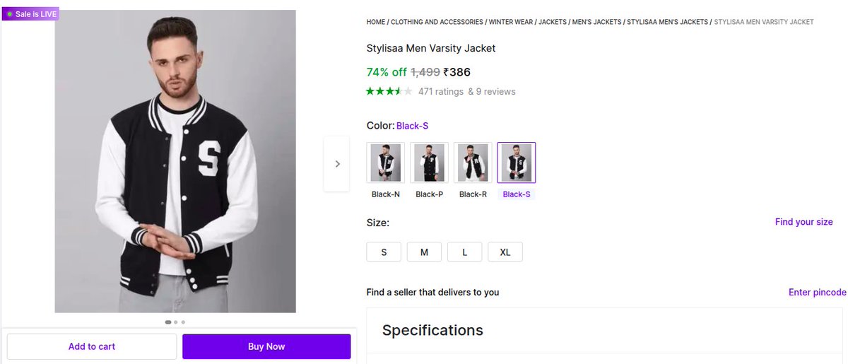 ๐งฅ Stylisaa Menโs Varsity Jacket โ โน386 ๐ฅ ๐ Classic varsity design ๐ค Blackโwhite contrast sleeves ๐งต Soft & comfortable fabric ๐ Perfect for winter, college & casual wear ๐ฏ Sizes: S, M, L, XL ๐ share.haulpack.com/E59Mq6?src=ot #MensFashion #WinterWear #techflames