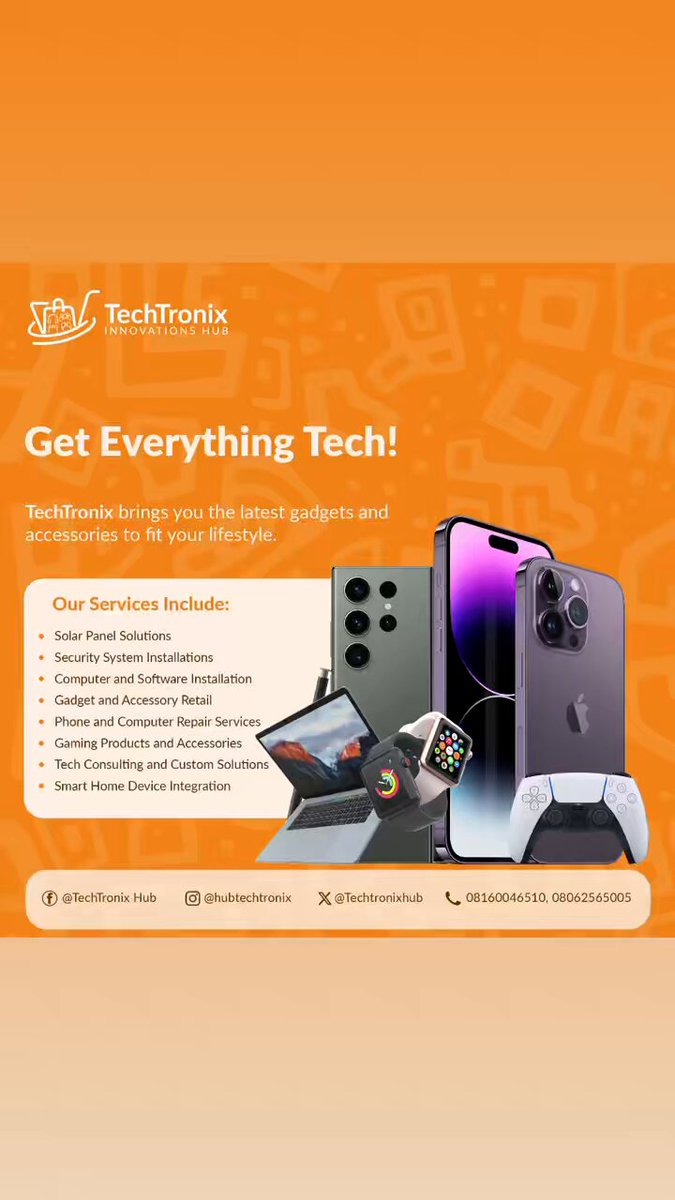 Think Technology, think Techtronix Hub! Get familiar with us today and experience the future of tech solutions! Your one-stop shop for: 📱 Gadgets 🤖 Innovation 💻 Expertise #TechtronixHub #Technology #Innovation #TechSolutions