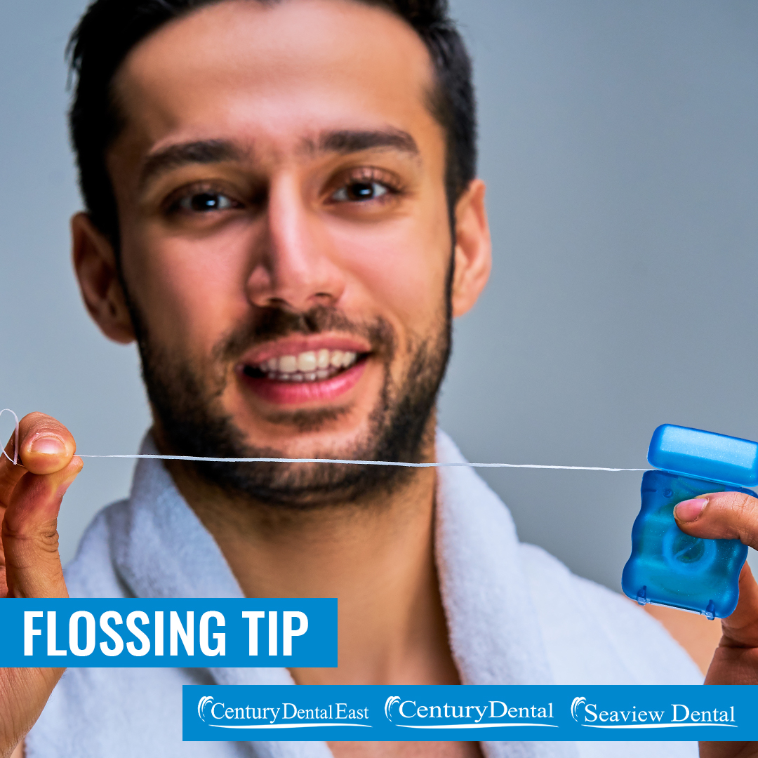 Often, just flossing between your teeth doesn't get everything! In order to get below the gumline when you floss, curve the floss around your tooth. #Flossing #TeethTip