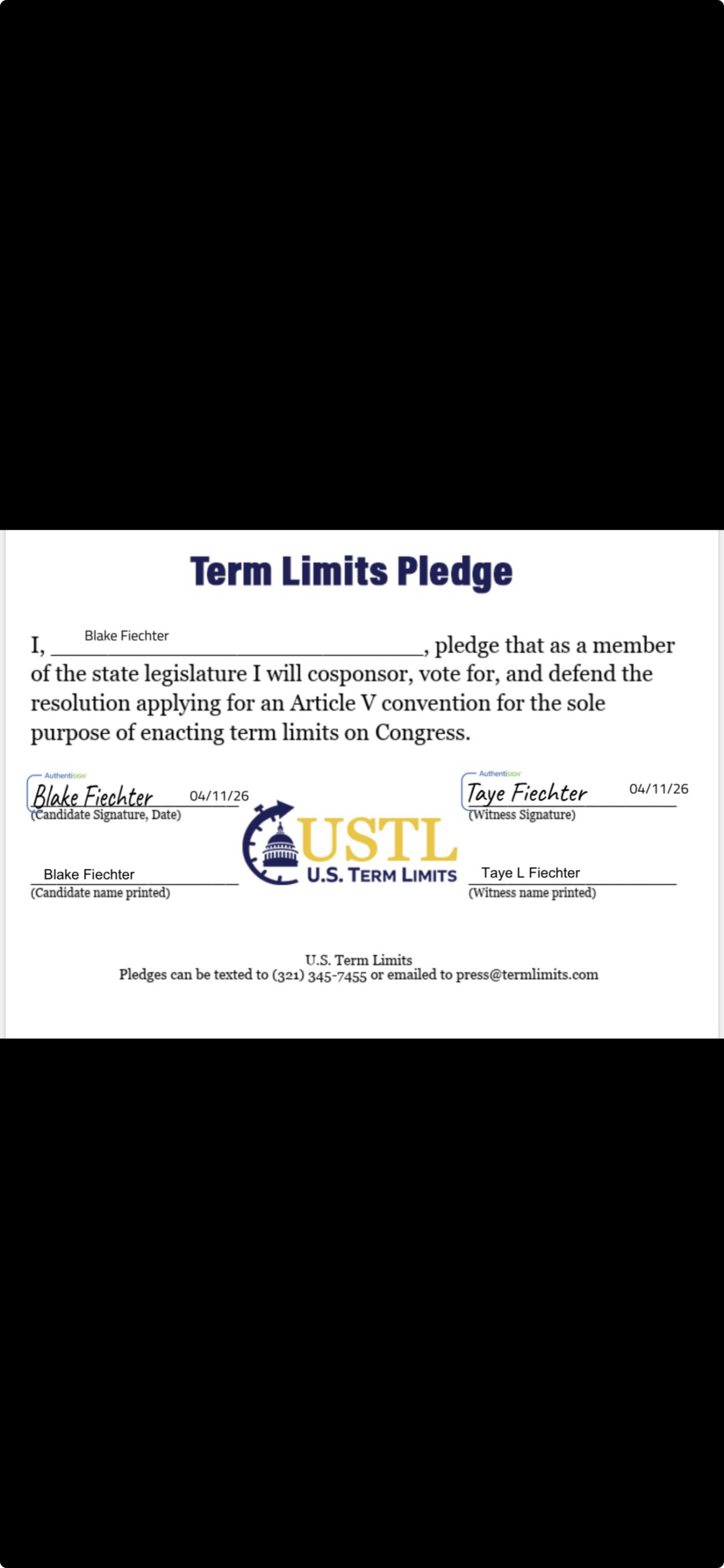 Thank you @BlakeFiechterIN for signing the #termlimits on Congress pledge. termlimits.com/wp-content/upl…