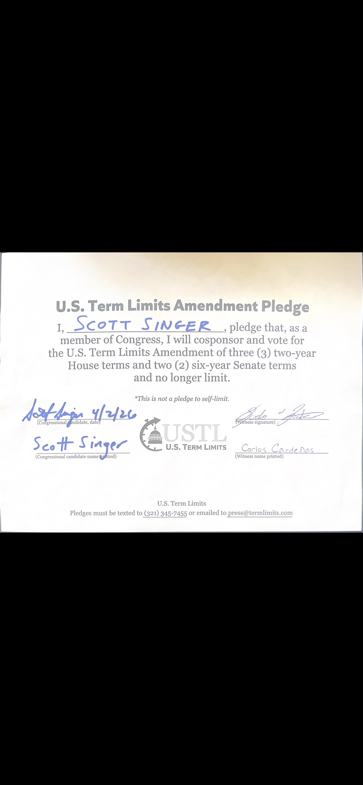 Thank you @ScottSingerUSA for signing the #termlimits on Congress pledge. termlimits.com/wp-content/upl…