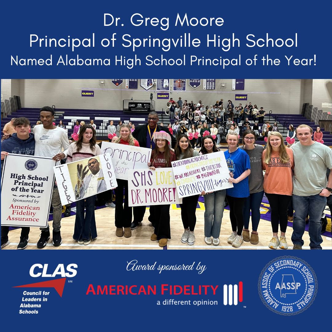 Congratulations to Dr. Moore for being named THE Alabama Association of Secondary School Principals (AASSP) PRINCIPAL OF THE YEAR!! #tigercode #iamatiger #tigerpride