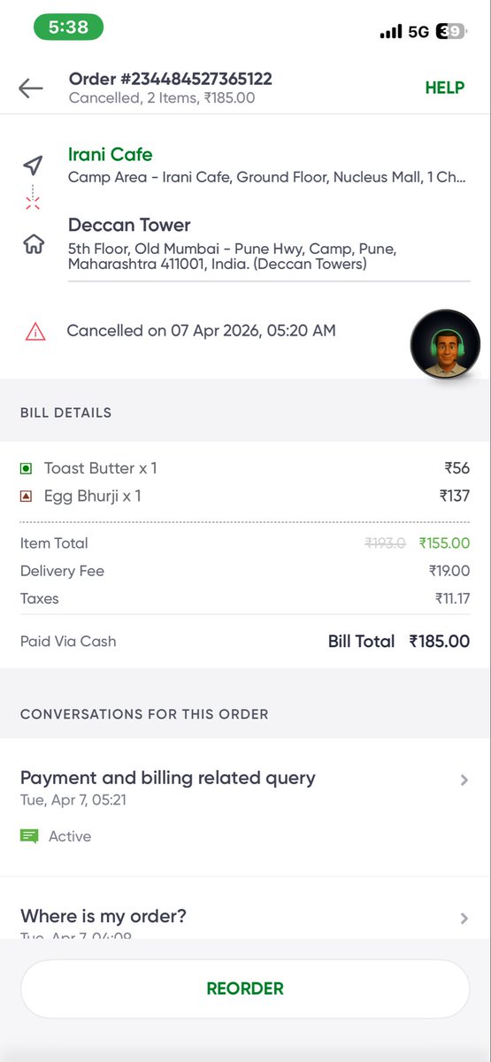 @Swiggy Very poor experience. Order ID: 234484527365122 Ordered from Irani Cafe, Pune with 20 mins ETA, but no delivery partner was assigned even after long wait. Support agent was unhelpful cancelled it forcefully ended the chat. Completely unprofessional. #toingapp