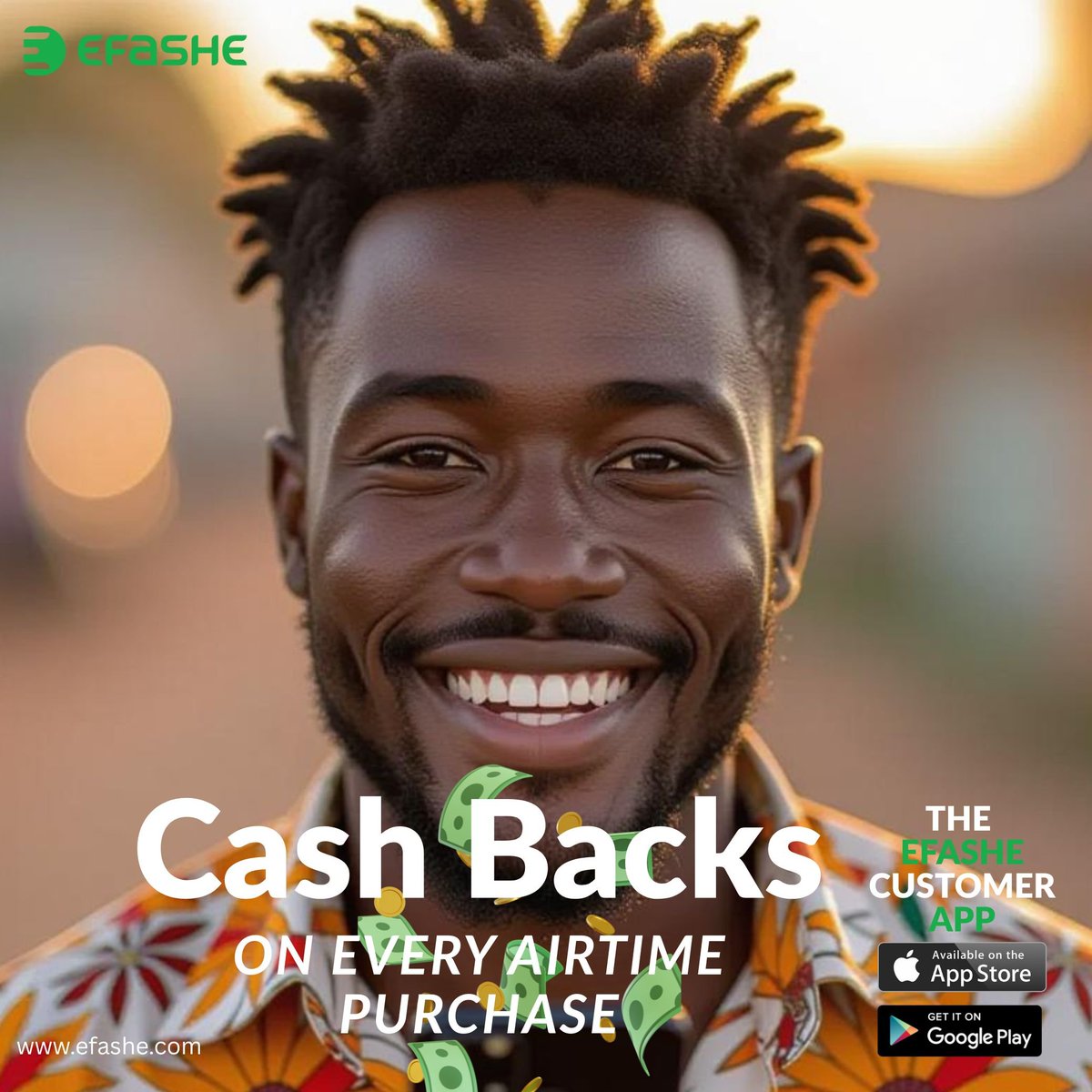Who doesn’t love a little something back? 😉 With the Efashe Customer App, you earn cashback every time you buy airtime! 💸 📲 Get it now: 🔹 Play Store: play.google.com/store/apps/det… 🔹 App Store: apps.apple.com/mw/app/efashe-… #Efashe #CashbackEveryTime #TopUpSmart