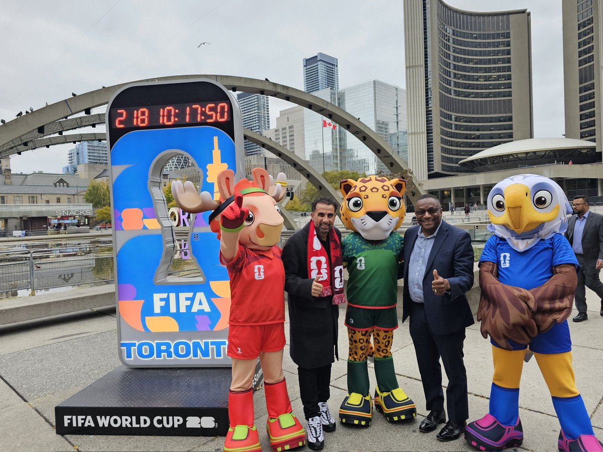 Today, I joined @dwaynederosario in welcoming Maple, Zayu, and Clutch - the FIFA World Cup 26™ mascots at Nathan Phillips Square. Toronto’s excitement for 2026 is already in the air! ⚽️✨#FIFAWorldCup26 #TorontoEvents #ReadyFor26