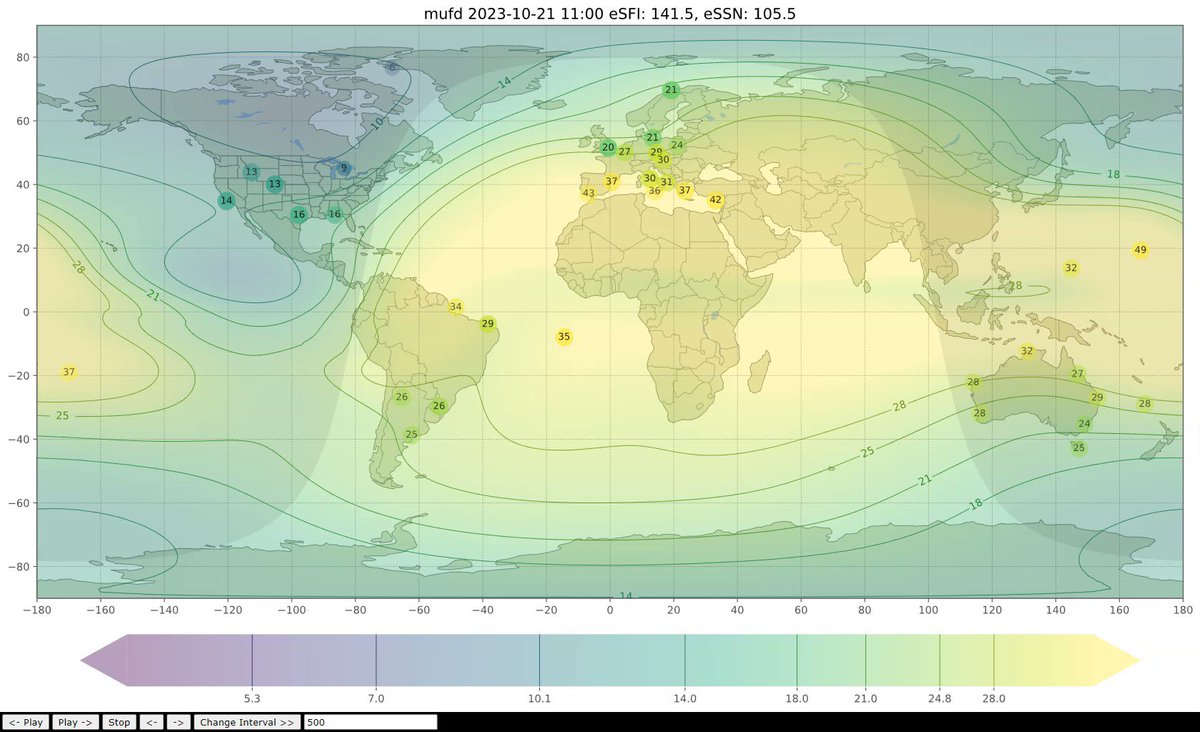 With fewer daylight hours in the Northern Hemisphere, it's very likely that #hamradio #DX condx on higher bands will decrease over the next months #TotalElectronContent #TEC #MUF - Let's enjoy October with outstanding 10m Band DX muf.hb9vqq.ch