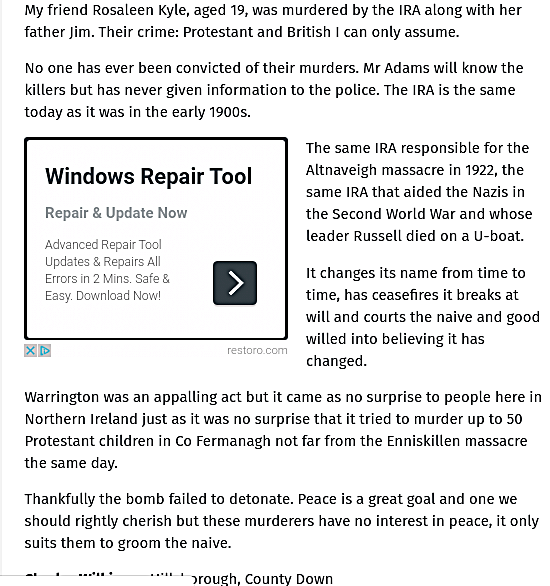Mr Wilkinson, from Hillsborough, had this overview to express re irish republican terror, many years after the INLA/IRA had called & murdered his friend; pre-dental student Rosaleen Kyle, 19, along with her bank manager father, Jim Kyle, at their home on 25/9/1976: #touchOftruth
