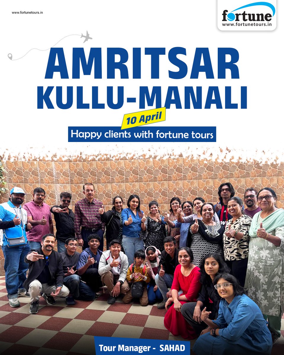 "Joyful memories were made! We’re delighted to know our happy travellers had an amazing time in the Amritsar Kullu Manali Group Tour that departed on 10 th April 2026. Your smiles are our greatest reward — thank you for choosing Fortune Tours!" #FortuneTours #Tours #Amritsar