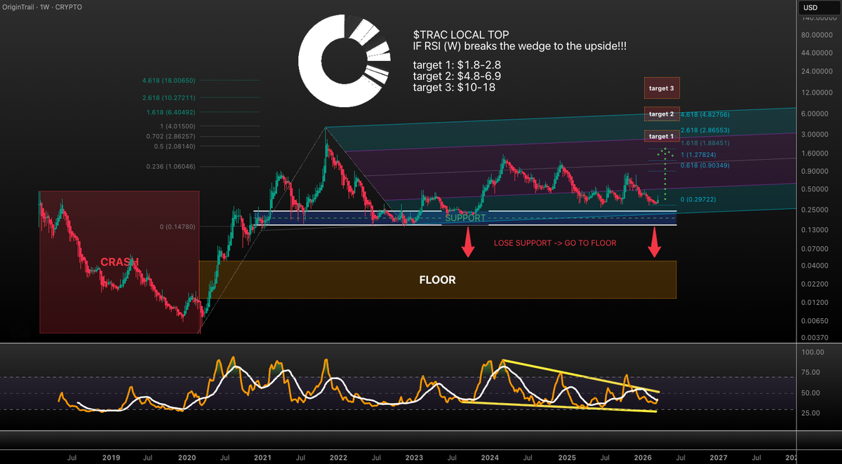 $TRAC UPDATE!!! It's been almost 4 months since I checked in with #TRAC and the plan is still intact!!! target 1: $1.8-2.8 target 2: $4.8-6.9 target 3: $10-18 The strength is def. building under the hood so the next impulse could start any moment! 💪 Invalidation: Lose the