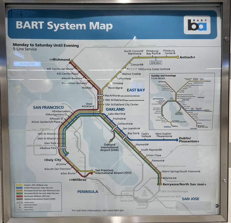 The @SFBART map with the first phase of its Silicon Valley extension to Milpitas and Berryessa/North San Jose. flic.kr/p/2mJtmt1 #transitmaps