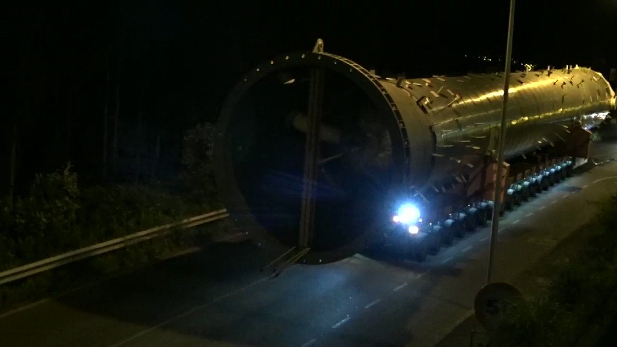 #Coruña - Vídeo 📹▶️ del espectacular Transporte Especial nocturno desde el Puerto Exterior de Punta Langosteira hasta la refinería de Repsol #Transmodal
