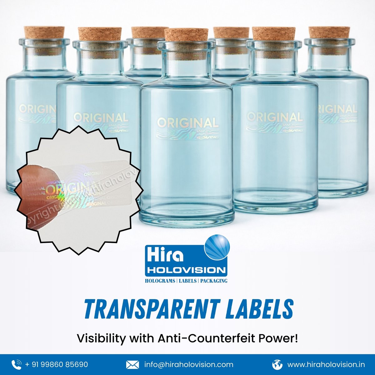 Hira Holovision’s transparent hologram labels offer easy authentication and tamper-evident security, preventing relabeling and unauthorized removal. Visit: hiraholovision.in/products/trans… #HiraHolovision #TransparentLabels #AntiCounterfeit #HologramLabels #BrandProtection