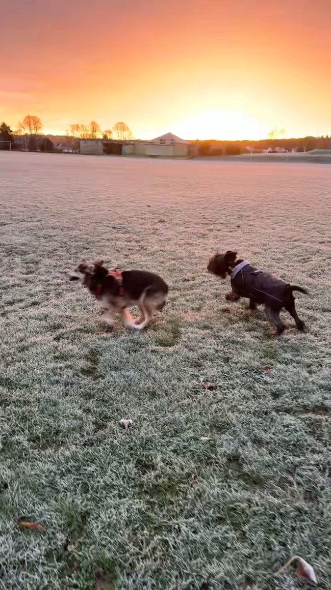 Winter is here. Lovely crisp morning for a walk with Hound. Great sunrise as well.& Hound was happy as he found an antler. #TreeClub
