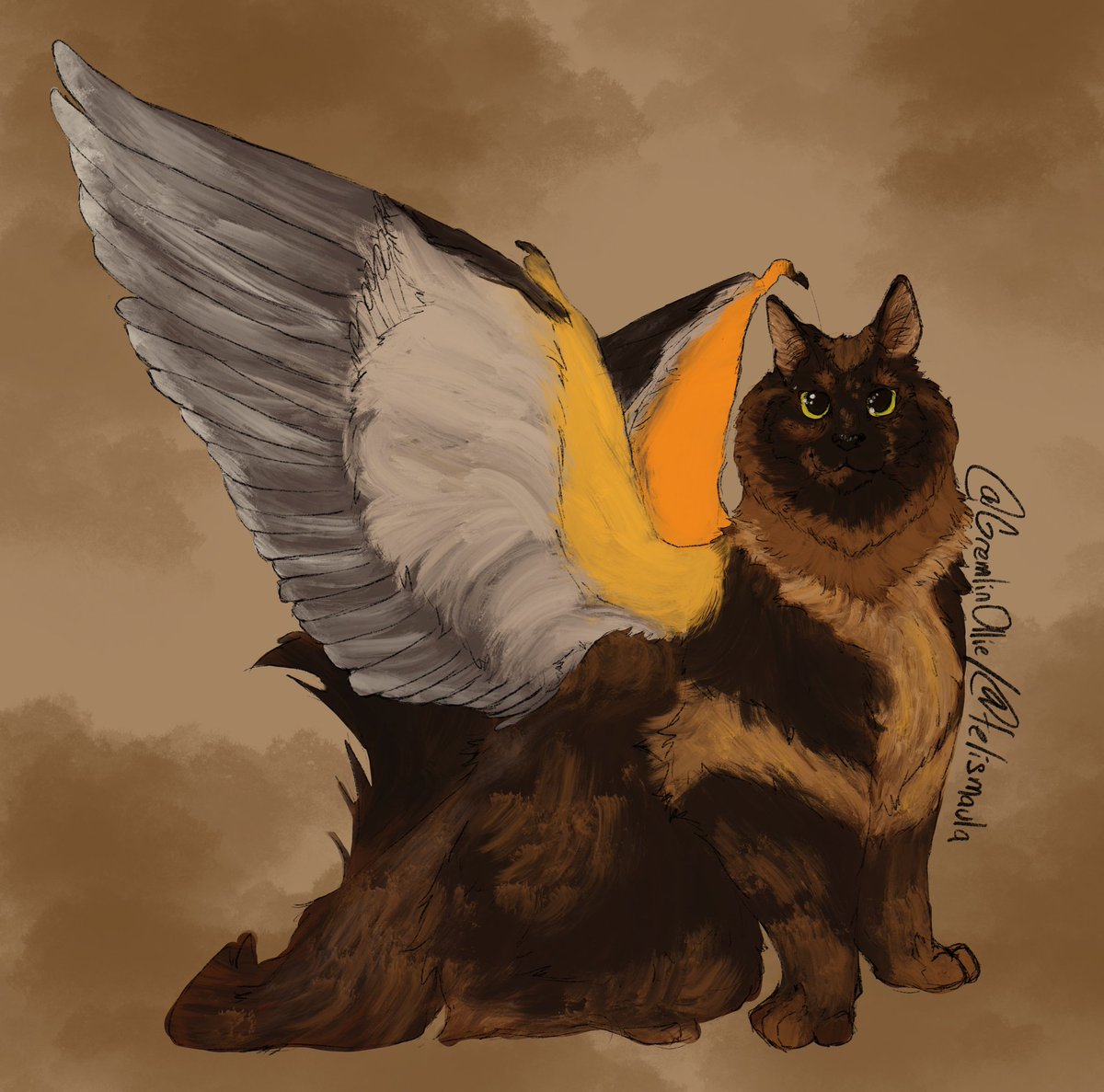 So if a tressym is a winged cat, if it was a sphynx would it have feathers? I suggest that it would not. Excited that spooky season is upon us, enjoy this weird little familiar <3 #dungeonsanddragons #tressym #bleptober