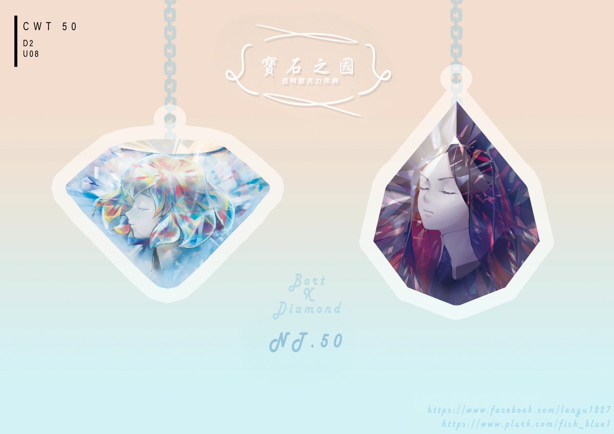 #CWT50 #U08 #轉發感謝 這次台大場有寄攤~❤️ 商品詳細資訊: ▼寶石之國-黑白鑽吊飾(兩款)▼ /透明壓克力雷射碎鑽膜/雙面同圖/5x5CM/ 寶石之國的吊飾兩面都有貼保護膜,要記得撕掉! ▼Undertale-決心吊飾(一款)▼ /透明壓克力/雙面不同圖/5x5CM/ 再偷偷提醒一下是雙面"不同"圖喔!