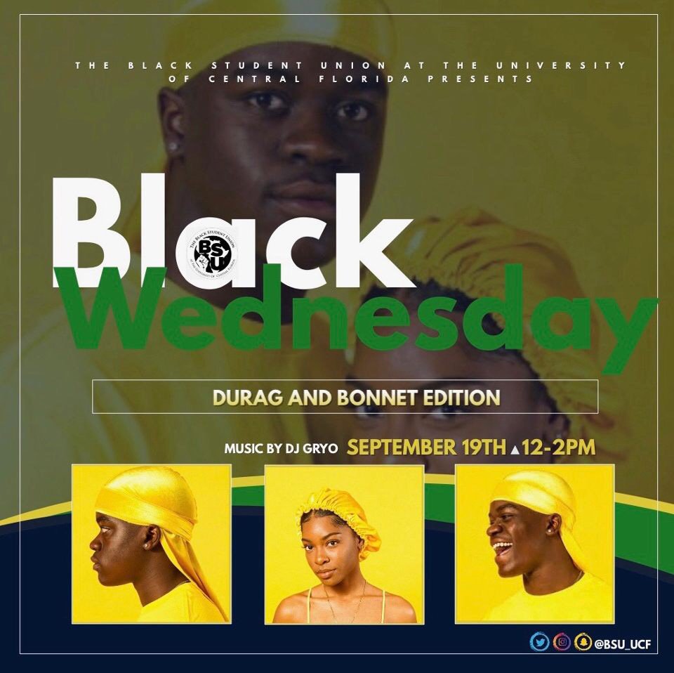 TOMORROW❗️Get educated on head wraps w/ @ASO_UCF, Grab some @GoldDripInc & get to know your hair w/ @NatTextUCF! Plus make ya fit go crazy for Black Wednesday by adding that durag or bonnet👀🤩 #UCF18 #UCF19 #UCF20 #UCF21 #UCF22