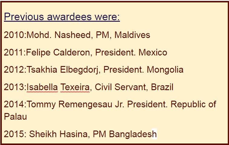 While the #GoI spends scarce resources on a huge advertising campaign to tell Indians about the #UNEnvironmentProgramme #Policy #Leadership Award for PM Modi, it is worth recalling who the previous recipients of the same award were.
