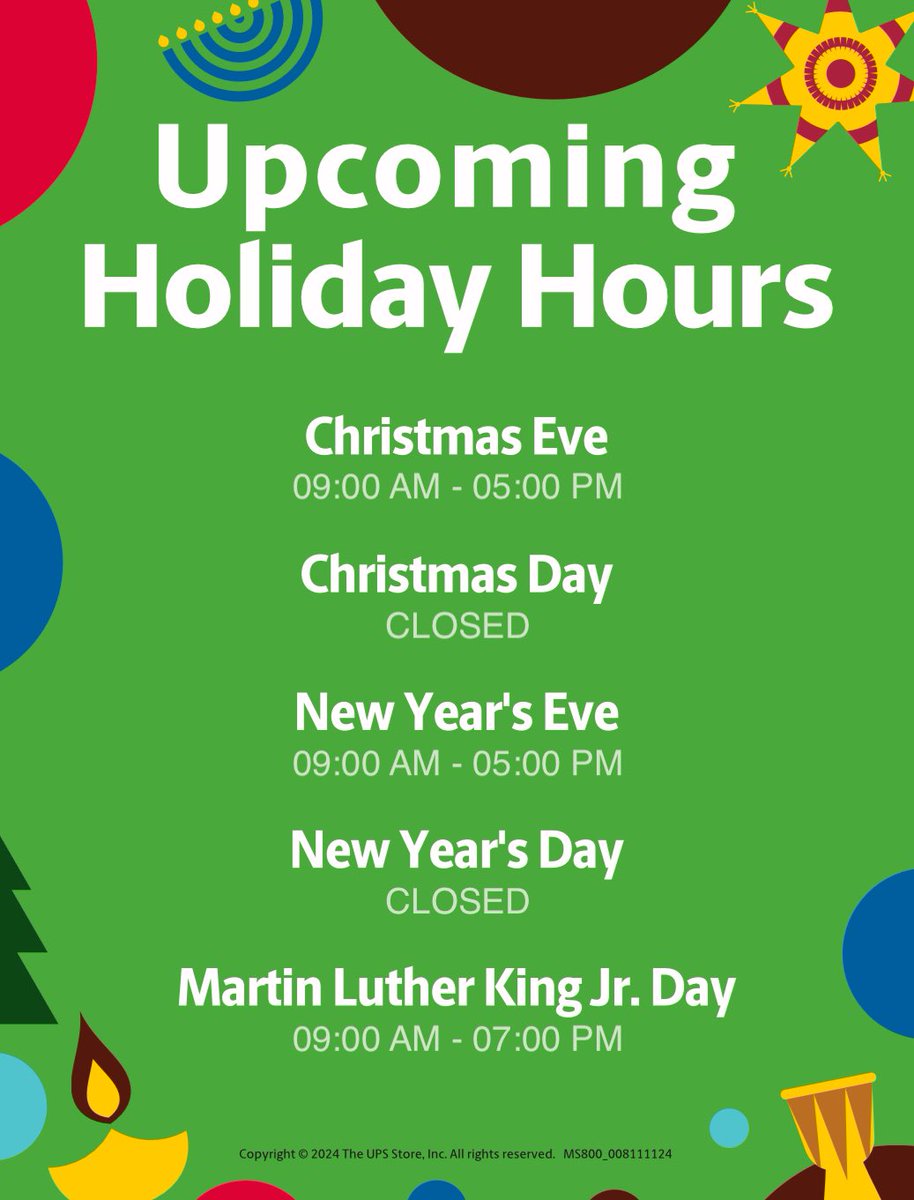Holiday hours #TheUPSStore7300 #upsstore #shipping #christmas #holidays #newyear #packing #dropoff #amazonreturns #notary #passportphoto #shredding