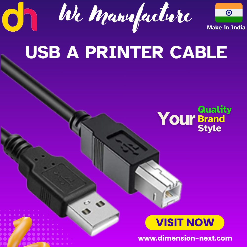 Precision Printing Starts with the Right Cable – USB A Printer Cable Visit now - dimension-next.com #USBAPrinterCable #PrinterCable #USBtoPrinter #DataTransferCable #USBTypeACable #HighSpeedCable #PrintingSolutions #WeManufacture #OEMIndia #MadeInIndia #CableManufacturer
