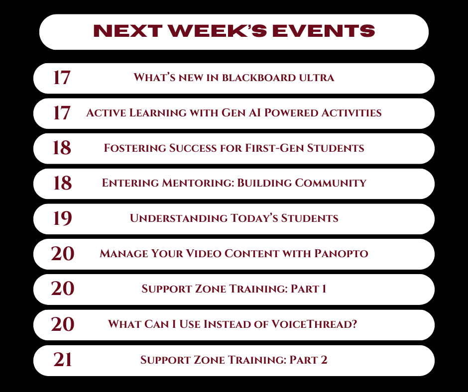 Check out our events for next week! Make sure to register in advance. #USCCTE #CTEworkshops sc.edu/about/offices_…