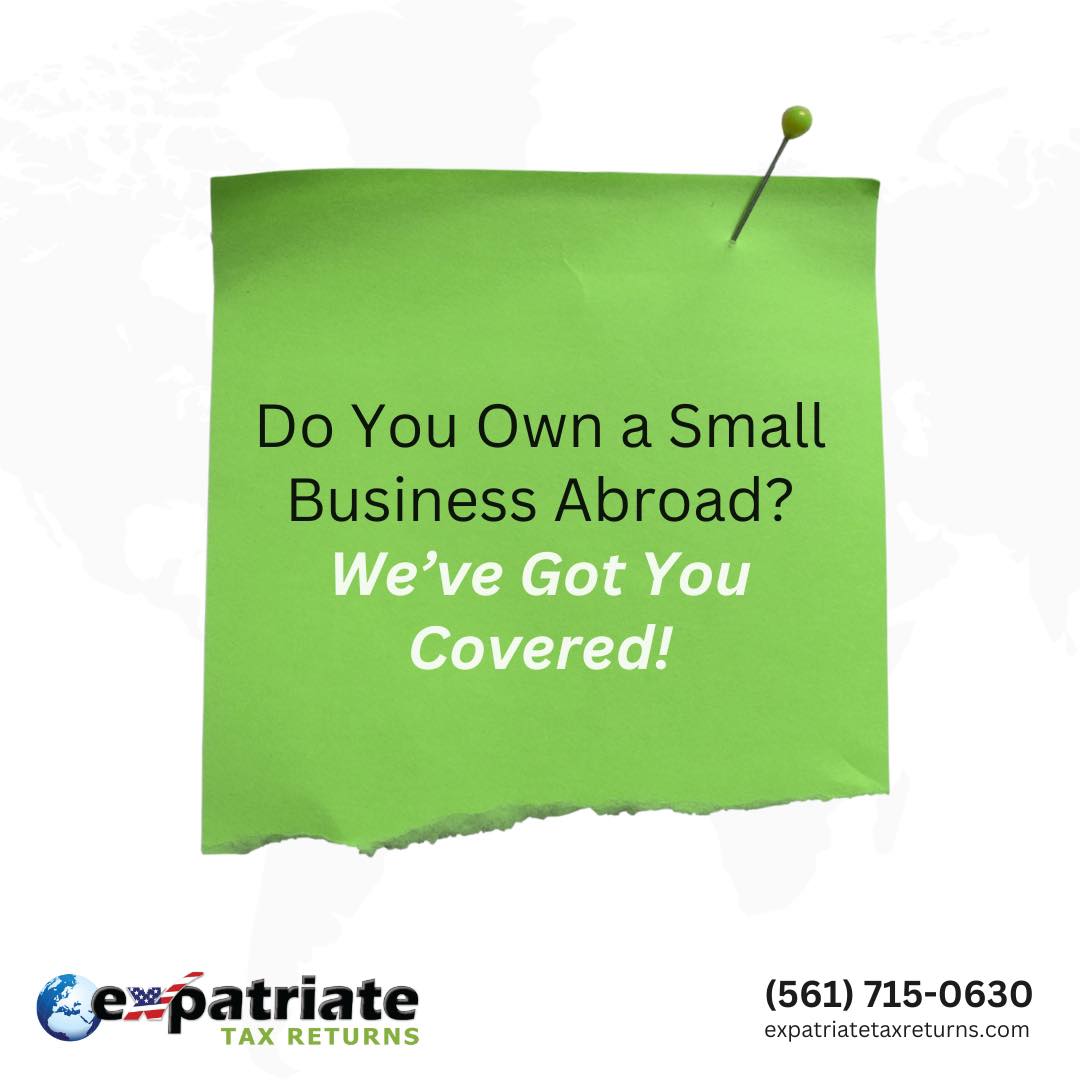 Own a small business overseas? We’ve got your back. U.S. tax rules don’t stop at the border—and neither do we. expatriatetaxreturns.com | (561) 715-0630 Let us handle your tax needs—so you can focus on growing your business abroad. #ExpatTaxes #SmallBusinessAbroad #USTaxHelp