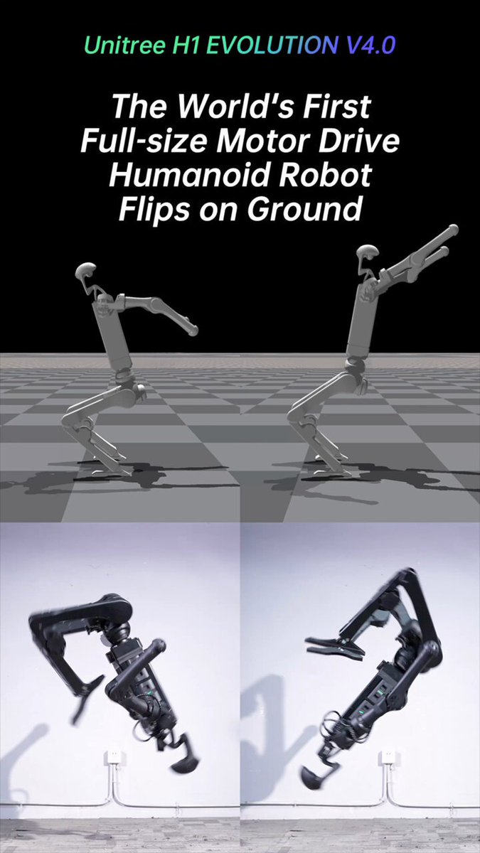 Unitree H1 The World's First Full-size Motor Drive Humanoid Robot Flips on Ground. Unitree H1 Deep Reinforcement Learning In-place Flipping ! #Unitree #UnitreeRobotics #AI #Robotics #Humanoidrobots #Worldrecord #Flips #EmbodiedAI #ArtificialIntelligence #Technology #Innovation