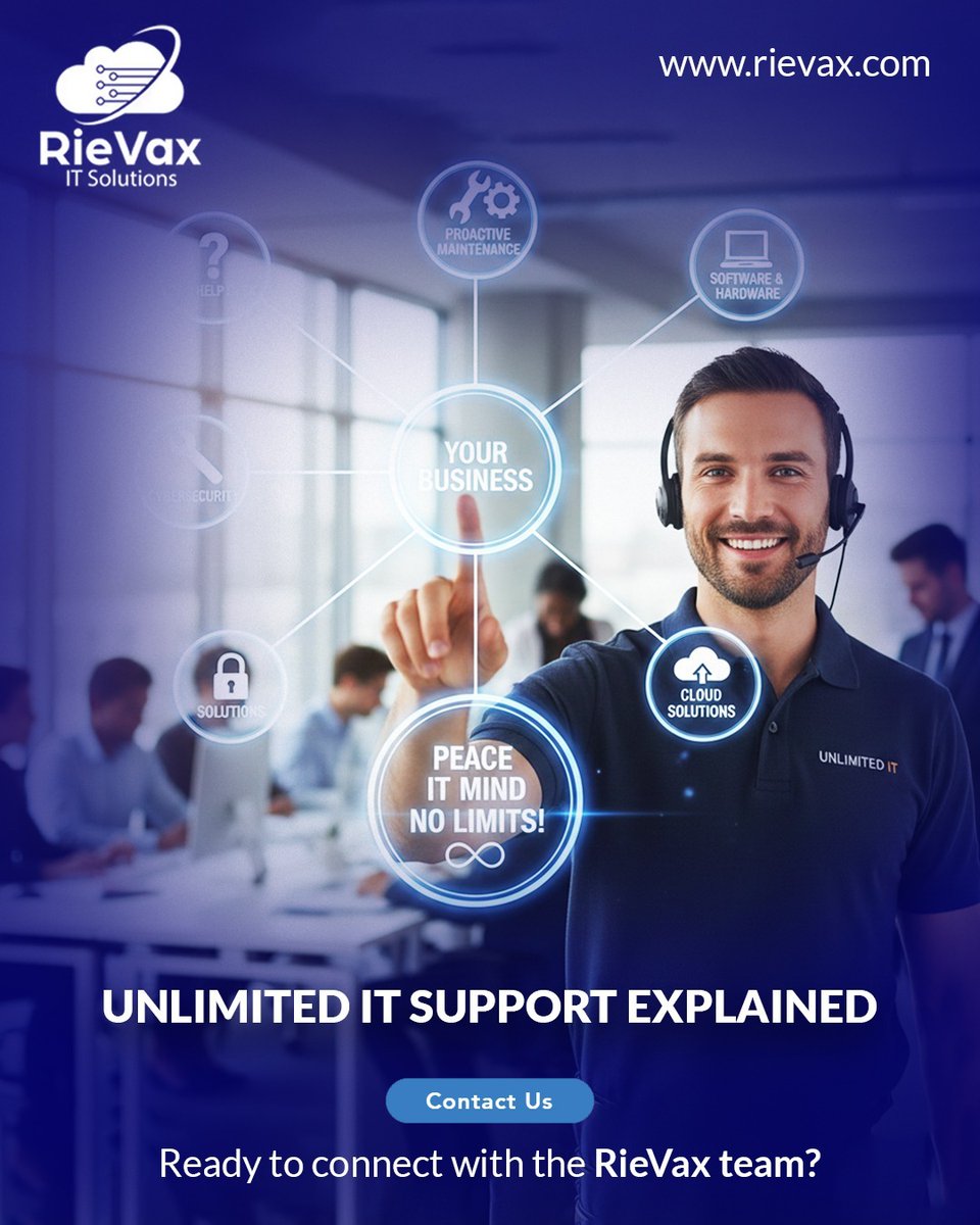 Reliable IT support shouldnโt have limits. Our unlimited IT services keep your systems running, your teams productive, and your business protected. Connect with RieVax today. ๐ Learn more at rievax.com #UnlimitedITSupport #ManagedITServices #BusinessIT