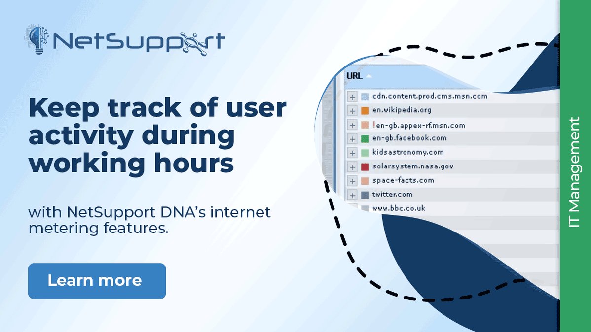 User-focused internet metering for complete web activity visibility. Keep track of user activity with NetSupport DNA mvnt.us/m1403013 #InternetMetering #UserVisability