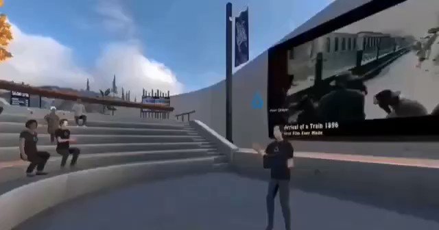 The story of the crowds reaction to early 1895 film 'Arrival of a Train La Ciotat' is recreated by @AGraylin at #V2EC2020 virtual reality conference as the train rips through the screen and ploughs into the crowd! Lol, the response of the audience! Only in #VR ENGAGE @vreducation