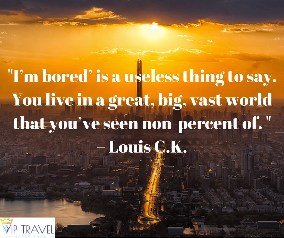 "I’m bored’ is a useless thing to say. You live in a great, big, vast world that you’ve seen non-percent of." – Louis C.K. #VIPTravel #VIPTE