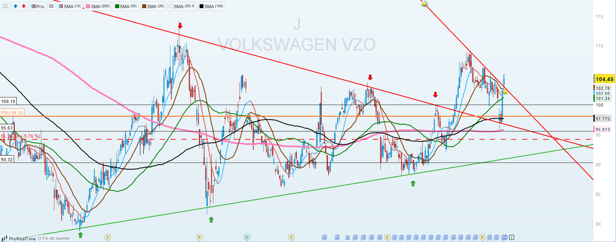 #VOW Je trouve Volkswagen est plutot pas mal. - Cassure mm200 - cassure oblique baissière - retour mm200 + oblique (merci trump) - casse la petite figure. - MM200 qui repasse haussière. Merci à @Tino_Bourse d'avoir parlé du secteur auto dans le live public MTT