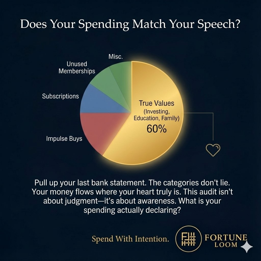 Your spending pattern is a real-time reflection of your true priorities. Every transaction, large or small, is a vote for the future you are building—or the one you are neglecting. Choose each one with intention. #IntentionalSpending #ValueBasedSpending #WealthMind #FortuneLoom