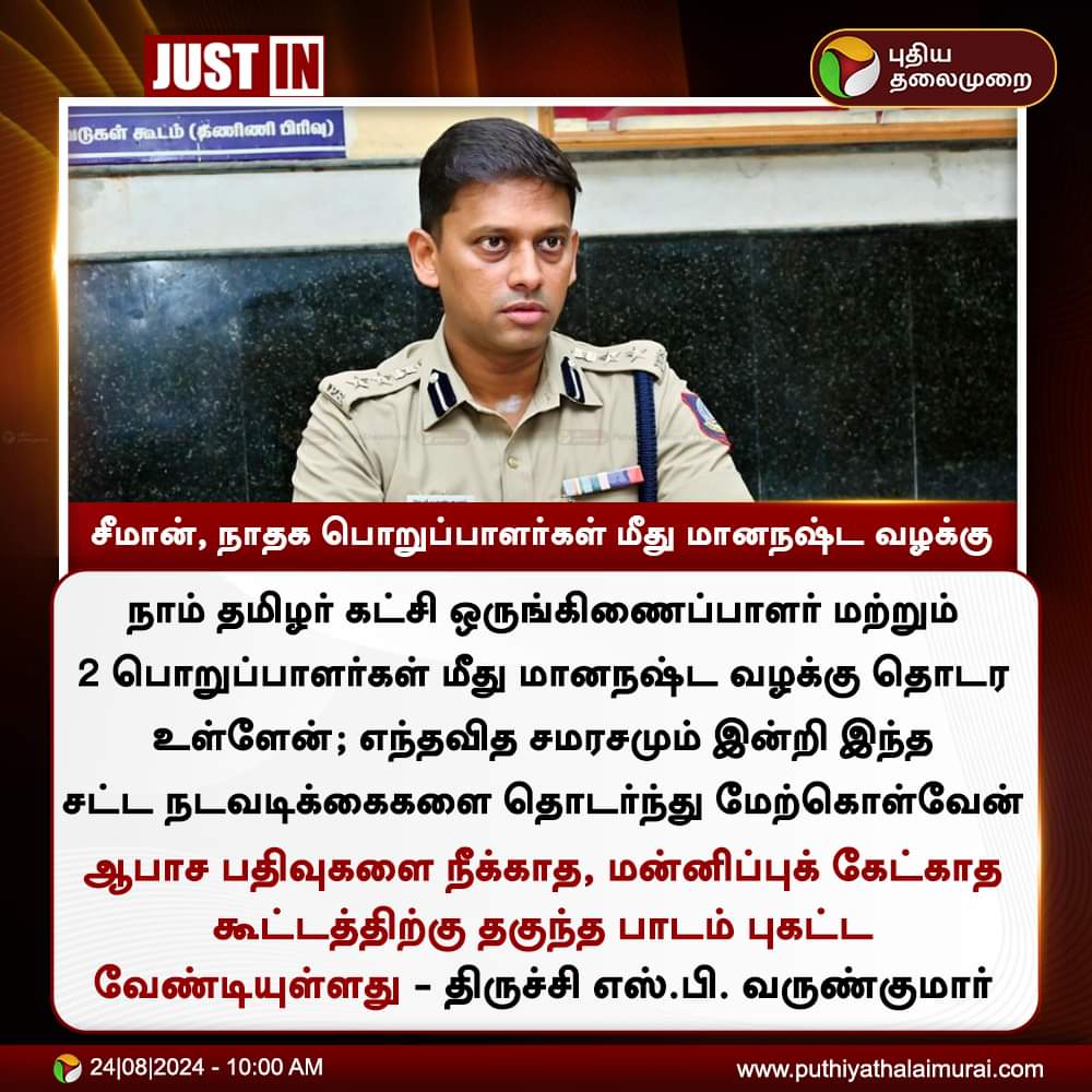 #JUSTIN | சீமான், நாதக பொறுப்பாளர்கள் மீது மானநஷ்ட வழக்கு எஸ்.பி. வருண்குமார் @VarunKumarIPSTN #VarunkumarSP | #Seeman