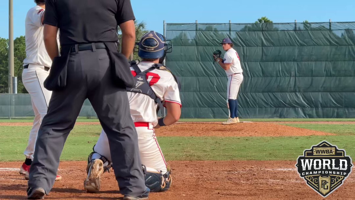 Michael Fekete (‘27, NJ) threw a quick shutout relief innings this morning. Physical 6-2/208 build. Low-effort mover with easy quick arm. T92 with the FB and mixed in a few quality low 80s breaker (~2400). #VirginiaTech commit. #WWBAWorlds @PGMidAtlantic