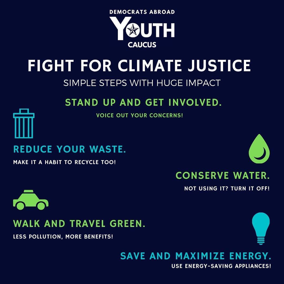 THREAD⬆️ Join #DemsAbroad in fighting climate justice with these five tips and tricks in the graphic! And share if YOU support climate justice! #virtualclimatestrike #climateaction #globalyouthcaucus #democratsabroad #americansabroad #climatecrisis #climatechangeisreal