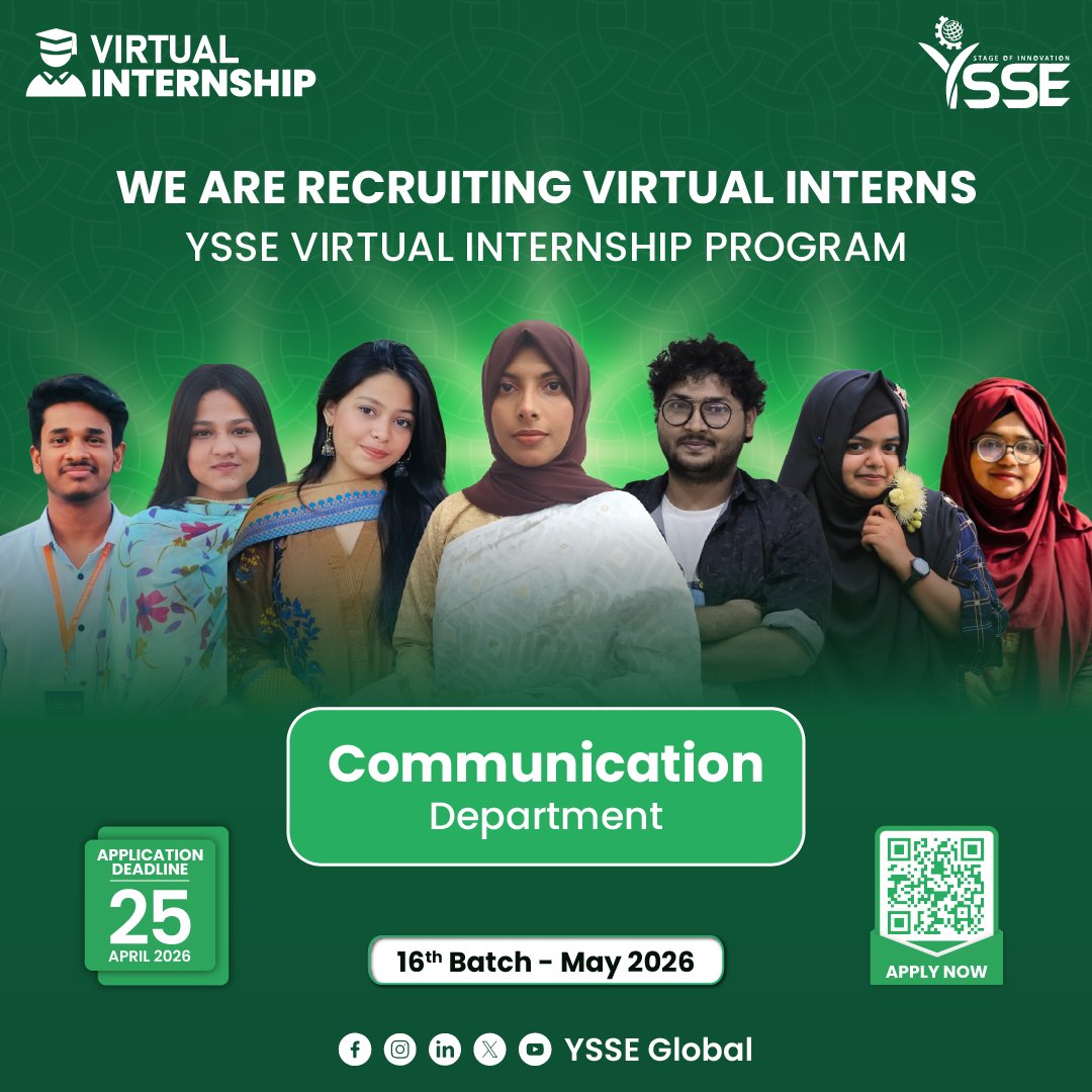 📢 Join the Communication Department of the YSSE Virtual Internship Program - 16th Batch! Love expressing ideas & engaging people? Turn your voice into impact. 🗓 4.5 months | ⏰ 20 hrs/week (Remote) 📝 Apply via comments ⏳ Deadline: Apr 25, 2026 #YSSE #VirtualInternship