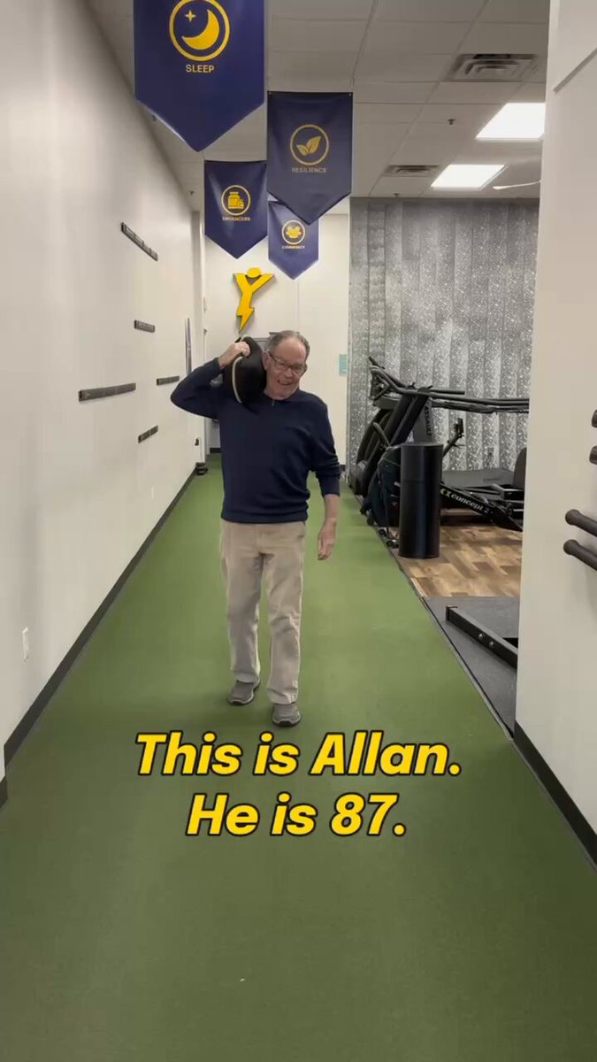 This is Allan. He’s 87 and training for real life. 20 lb carries so everyday tasks feel easier. Our Vitality Program launches in January to help you train for longevity and healthspan. #VitalityProgram #Healthspan #AgingStrong